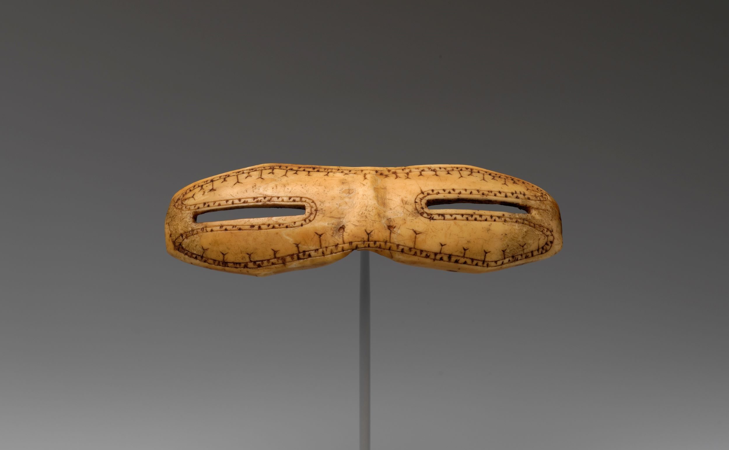 The works on view within this exhibition capture audiences in ways that demonstrate the multiplicity and capacity of Indigenous communities. Throughout my time in the galleries, I heard several visitors make comments about the ability of these people to not only survive, but to flourish and to create beauty in conditions that are so far removed from their own experiences. One example of an object that facilitated such a conversation was the Thule (ancestral Inuit) snow goggles carved from walrus ivory (fig. 4). As I stood in the gallery, I watched as an adult explained what they were to a child, who responded: “Wow, they don’t look that different from my ski goggles. Did Native Americans invent ski goggles?” In this moment and others, through the direct interaction of audiences with the materiality of art, there is opportunity to build greater understanding and respect for diversity as well as an appreciation for the possibilities that emerge from interactions with multiple communities. The inclusion of this exhibition in the American Wing certainly promotes greater audience engagement with those who may not otherwise have engaged with this material.