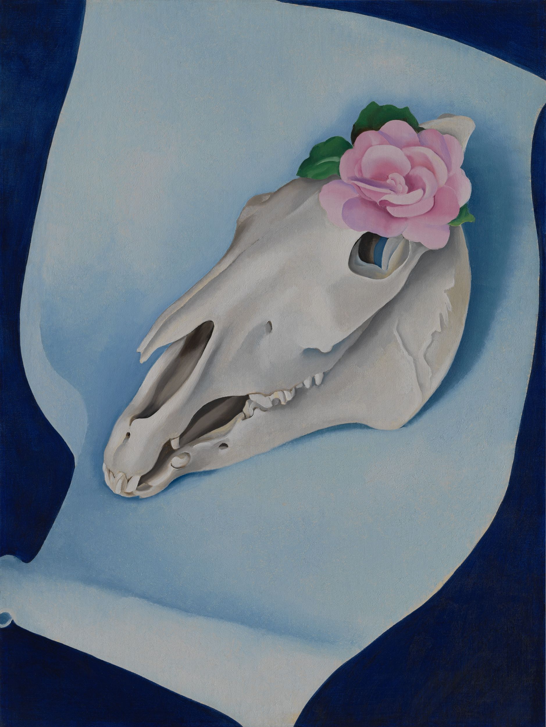 Fig. 1. Georgia O’Keeffe, Horse’s Skull With Pink Rose, 1931. Oil on canvas, 40 x 30 in. Los Angeles County Museum of Art, AC1994.159.1. Digital Image © 2025 Museum Associates / LACMA. Licensed by Art Resource, NY