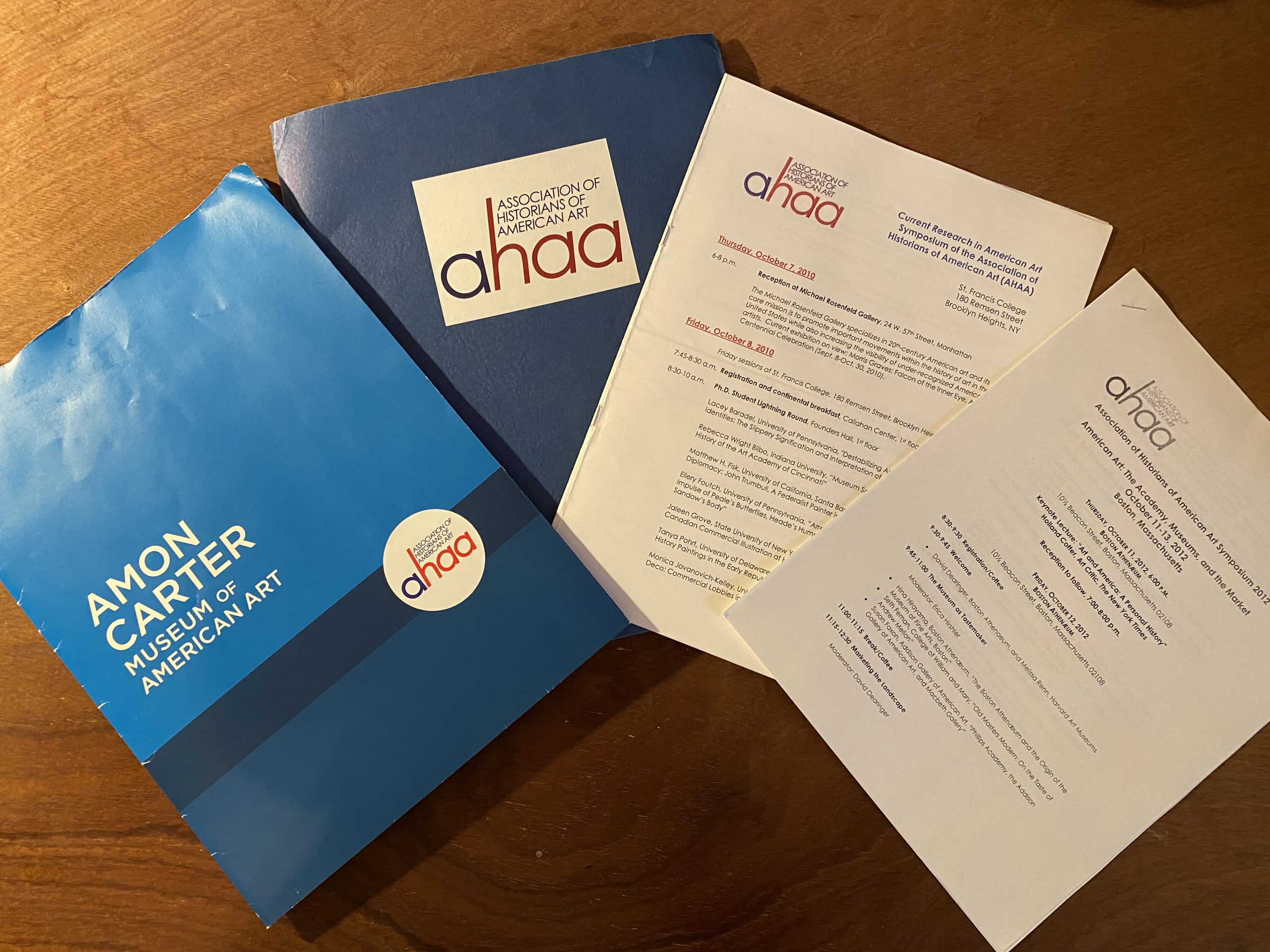 From the beginning, AHAA’s annual meetings demonstrated its commitment to the combination of and dynamic interchange between theory and practice, the university and the museum, pedagogy and curation, scholarship and public engagement. Indeed, the organization’s CAA sessions archive, which goes back to 1995, shows a succession of panels consistently alternating between theoretical concerns and professional practices.2 As John Davis noted in his 2003 Art Bulletin state of the field essay, AHAA’s panels at CAA would become a proving ground for major methodological and professional developments among Americanists and a harbinger of the field’s perspectives on canon formation and interdisciplinarity.3 Beginning in 2010, the biennial symposium offered an expanded space for such debates, a platform for emerging voices, and a forum for new strategies bridging the theory-practice divide—as in 2018, when the symposium organizers tapped the leadership of the Archives of American Art to lead a session on teaching with primary sources (fig. 5).4