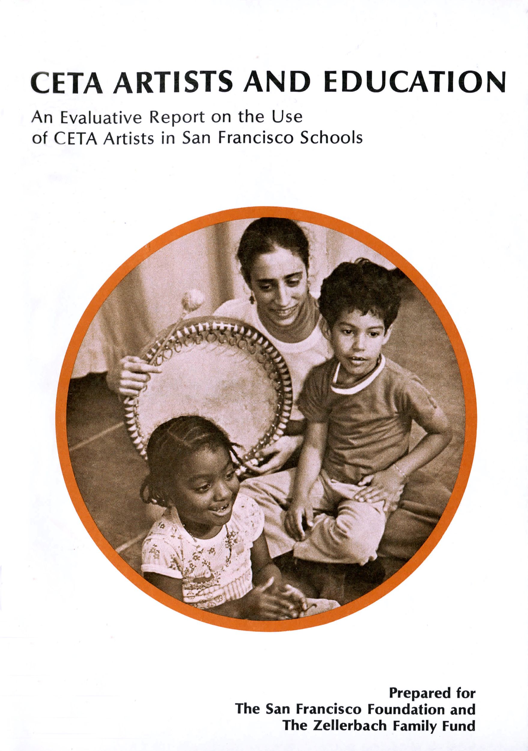 As we discovered, a key chapter in the story of CETA as a forgotten New Deal legacy took place right where we live. In 1974, the San Francisco Bay Area became the birthplace of CETA funding for the arts when local leaders used its Title VI funding, which was earmarked for community service positions, to hire artists.5 Qualifying Bay Area creatives specializing in the fields of literature, craft, and the visual and performing arts took up a range of civic assignments in neighborhood cultural centers and schools, the latter captured on the cover of a 1980 report documenting San Francisco CETA artists’ contributions to public education (fig. 1).6 As had been the case during the New Deal, applicants for federally funded jobs included painters, sculptors, photographers, filmmakers, poets, folklorists, playwrights, historians, curators, musicians, dancers, actors, archivists, and other creatives. Under CETA, they taught, made civic murals, designed and maintained public gardens, and organized cultural events, many of which continue to enrich San Francisco culture. They were paid to engage in service work and also received paid time to develop their art practices, grassroots arts organizations, and multidisciplinary creative networks.