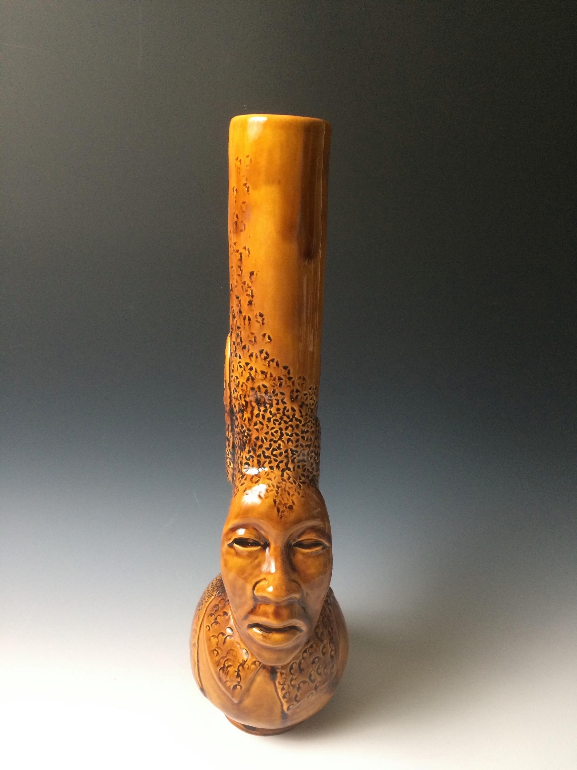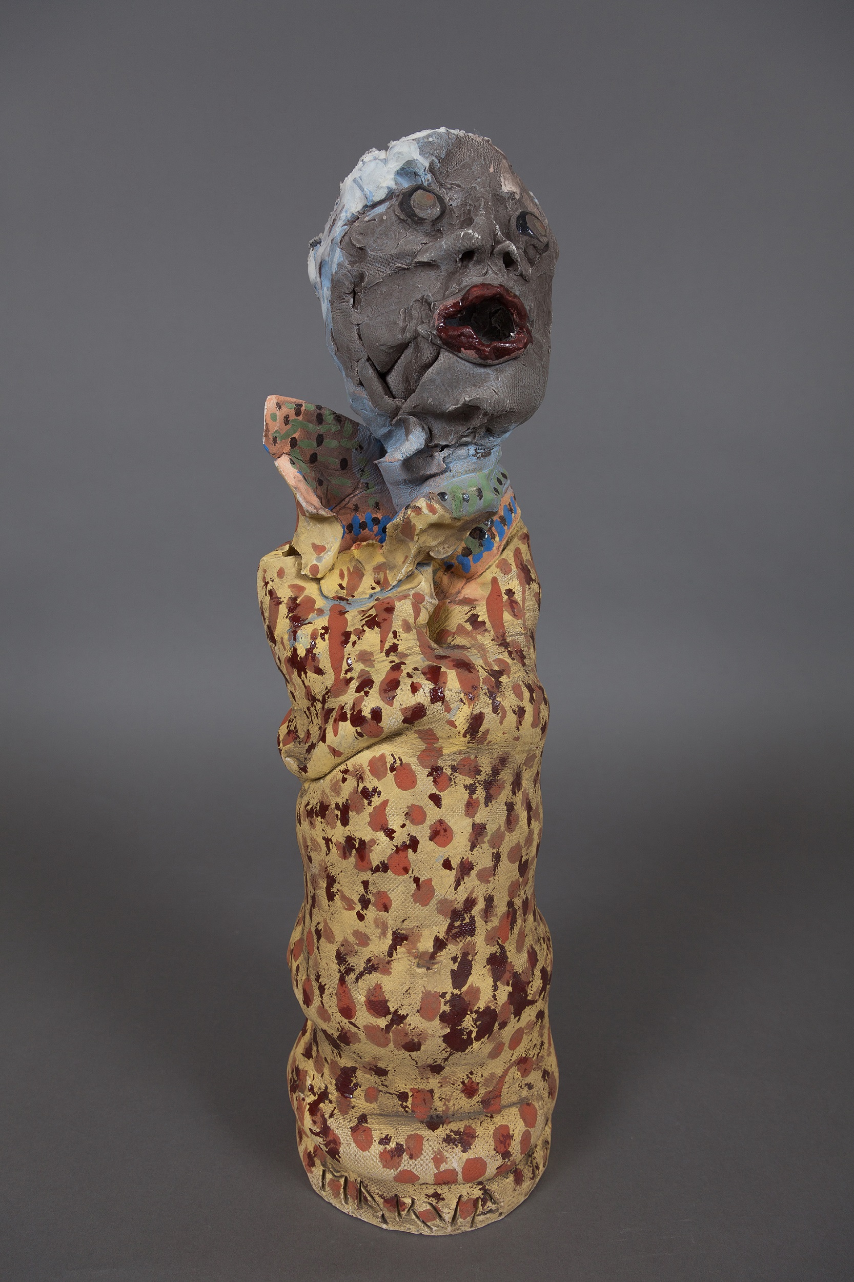 Turner-Crawford, Sylvain, and Hawkins forge ties with Chicago’s Black Arts Movement. Turner-Crawford and Sylvain were especially influenced by AfriCOBRA (African Commune of Bad Relevant Artists), a movement founded on the South Side in 1968 “to assert their shared African heritage, aesthetics, and experience of oppression.”40 Turner-Crawford’s vibrant mixed-media collage Meditations on Race and Women (fig. 8) centers the African continent surrounded by images of African women of different ages and an ankh, the ancient Egyptian symbol of life, to engage historical memory, celebration, and empowerment. A muralist, Sylvain painted Color Me South Side (fig. 9) on the wall of Mariano’s grocery store in Bronzeville as a dynamic homage to Black musicians, AfriCOBRA, and the patterns of the African diaspora.41 Hawkins is the daughter of Florence Hawkins, a contributor to the mural The Wall of Respect, which was installed at Forty-Third Street and Langley on the South Side of Chicago in 1967. Conceived of and coordinated by the Visual Arts Workshop of the Organization of Black American Culture (OBAC), the mural honored Black heroes such as Nat Turner, Malcolm X, Muhammad Ali, W. E. B. Du Bois, Marcus Garvey, and Aretha Franklin.42 Hawkins’ Janice Pot (fig. 10) is, as she states, a “playful take on the two-headed forms found across Mende, Bamana, and other tribal carvings, symbolizing beginnings and transition,” especially for women. Hawkins adds that this work also acknowledges the important influence of Jolly’s hand-built clay figures on her art, for instance Spirit Woman (fig. 11).43